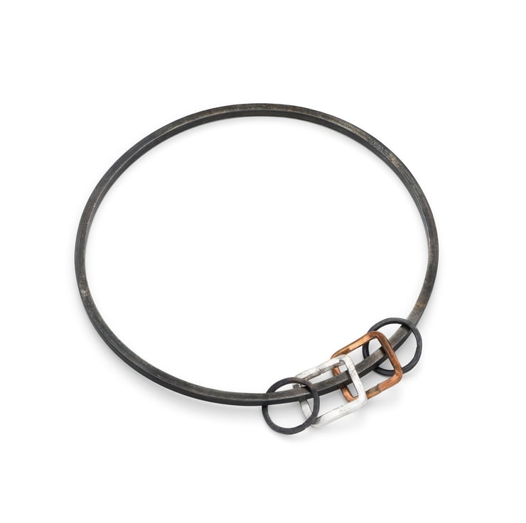 Rafaela by Fedha - oxidised silver bangle with silver and copper charms