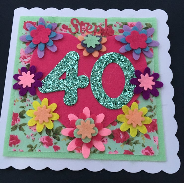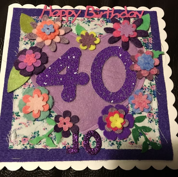 A lovely felt and fabric machine and hand sewn 40th birthday card, can be made with any age