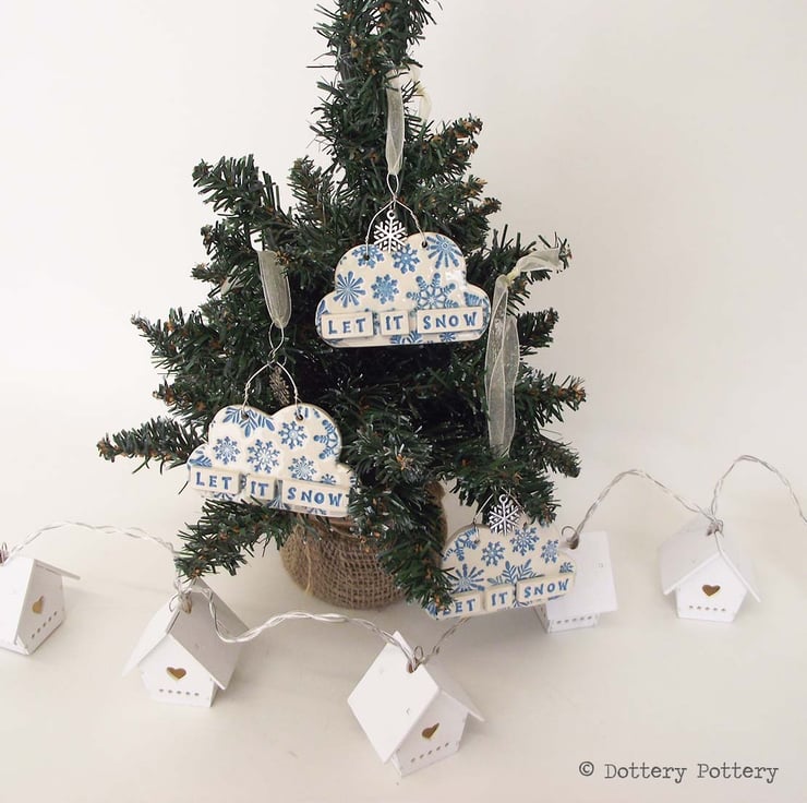 This cute little cloud is made from white earthenware clay. Each part has been embossed with pattern and then cut from hand made templates.