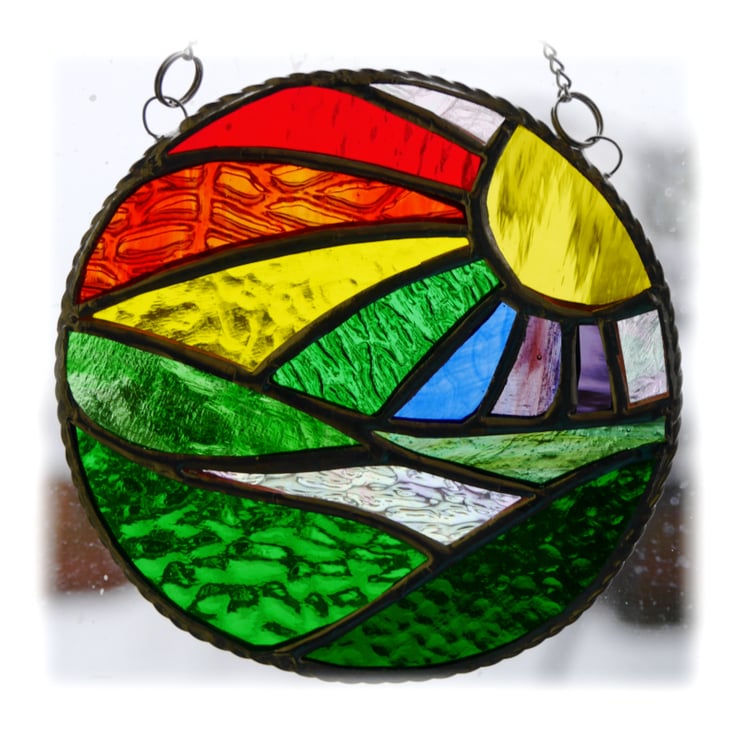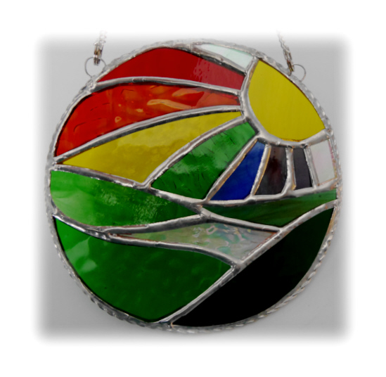 This is a stained glass suncatcher made using the Tiffany copper foil technique.