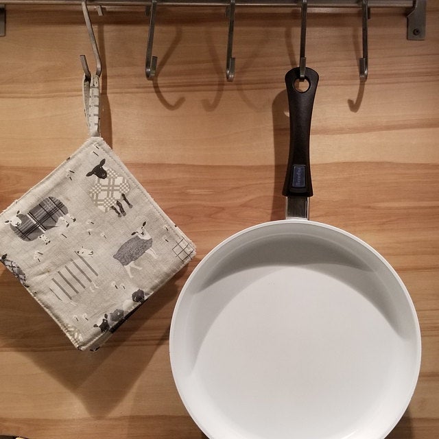 A Pot Holder backed with a cream towel fabric - useful for mopping up around the kitchen,