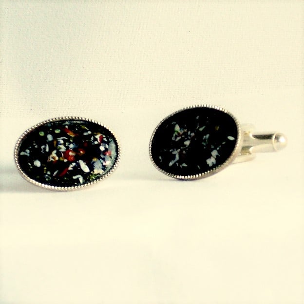 The ovals measure 18mm (widest) by 12mm (tallest). I have mounted them in a commercial cufflink finding.