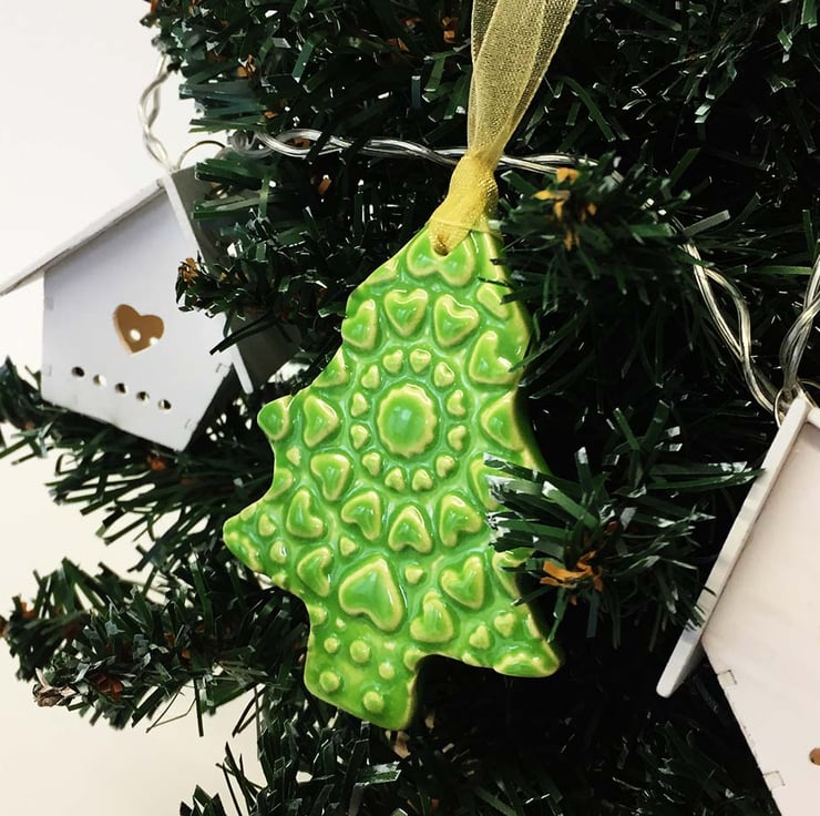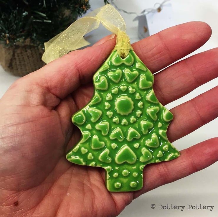 This highly decorative Christmas tree is made from white earthenware clay.