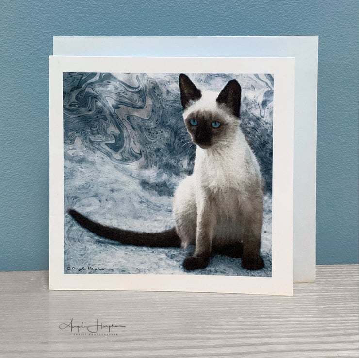 Square blank fine art card. Digitally enhanced photograph of a cat in Athens Greece, printed on good quality card.
