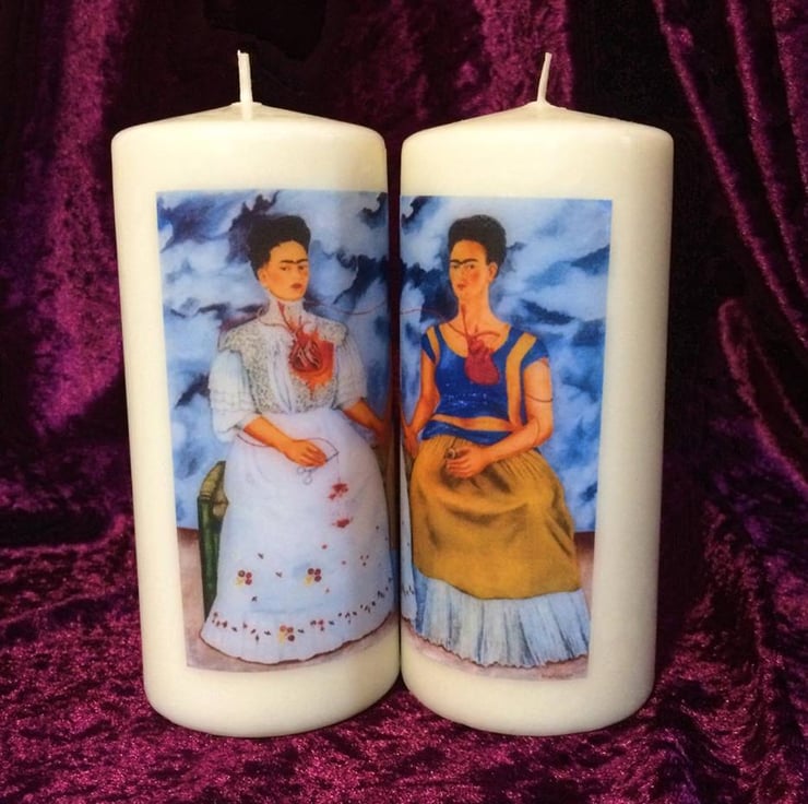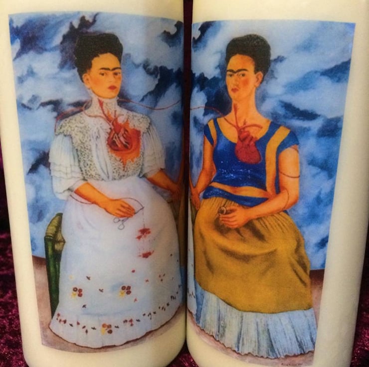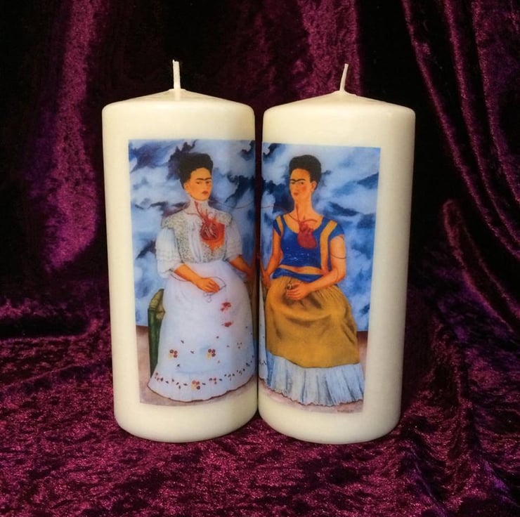 Fun handmade candles based on the amazing Mexican painter known for her self-portraits Frida Kahlo