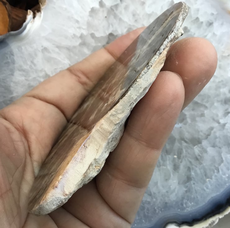 The back of this specimen have been carefully smoothed and cleaned, yet left as near to the natural and rustic as possible, the front has been very carefully smoothed and polished, so that it is completely flat and wonderfully tactile and allow you to see the inner beauty of the ammonite.