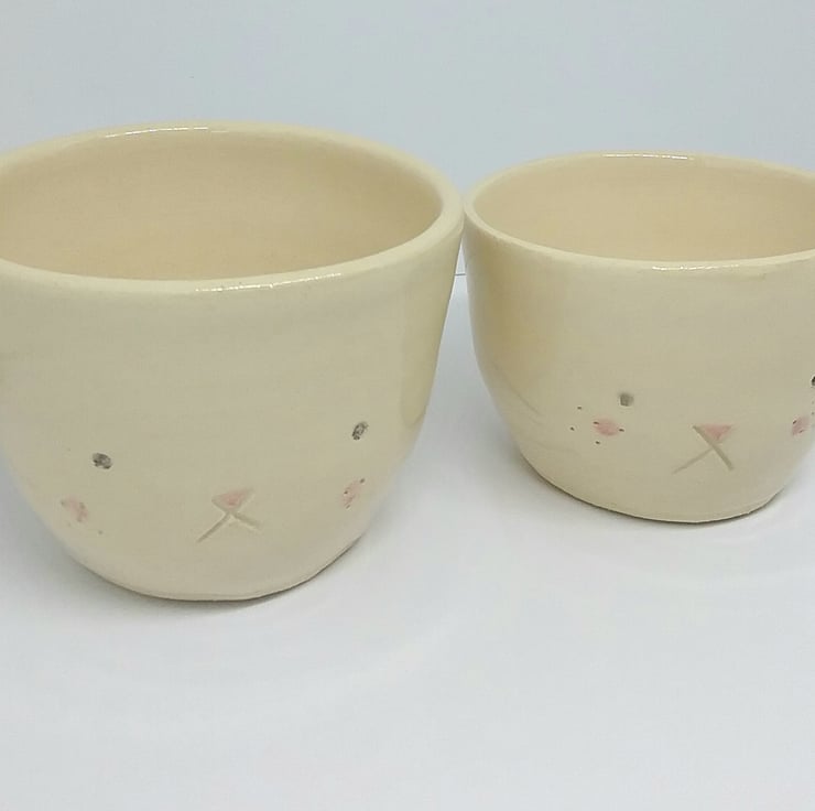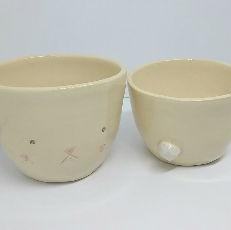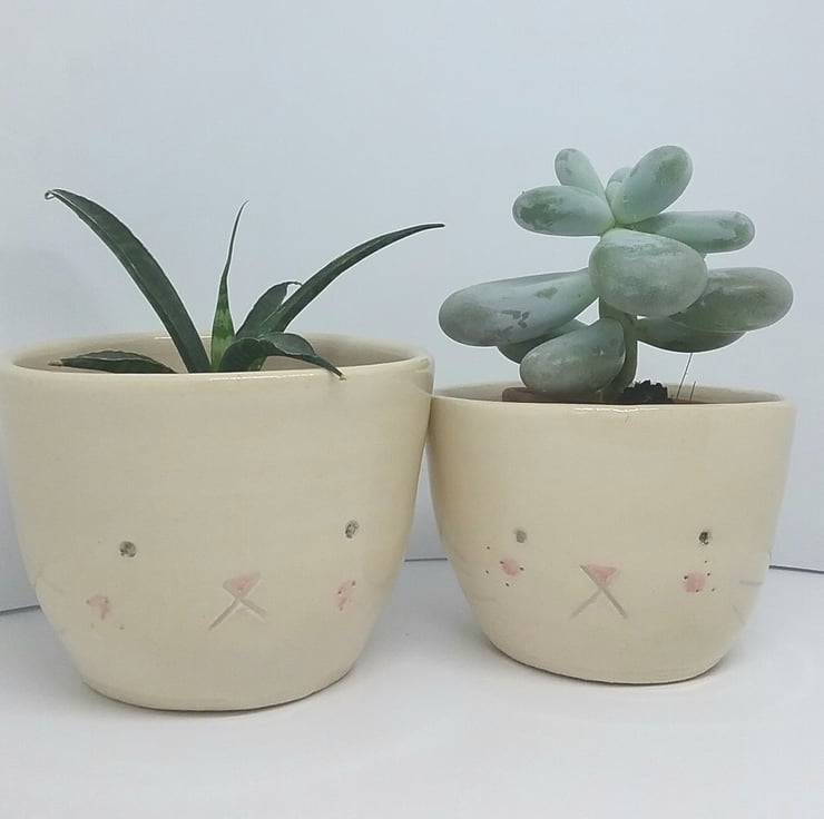 Thus is for the small handthrown pottery rabbit cup or plant pot for succulents with little bunny face and ceramic cotton tail.