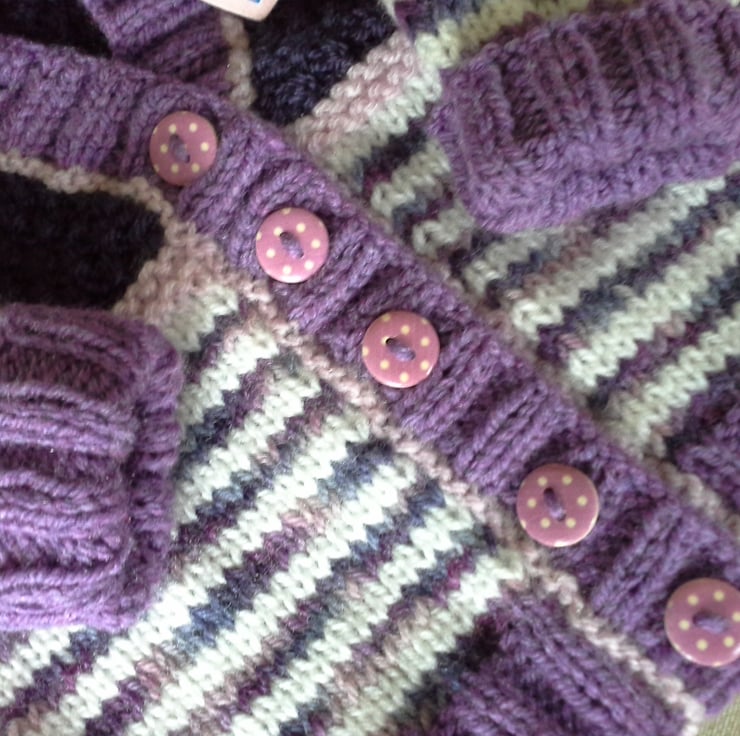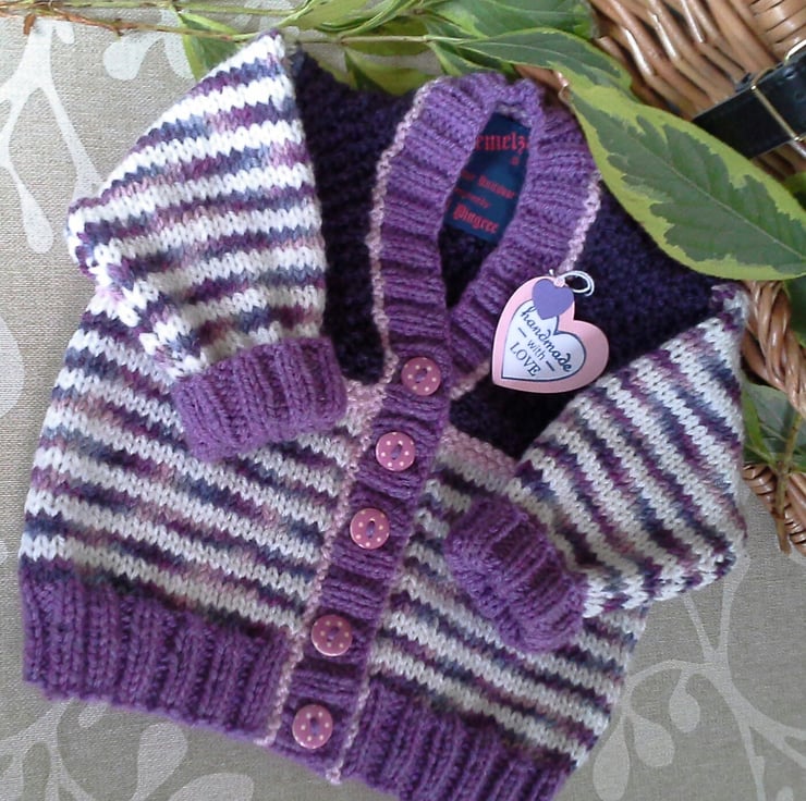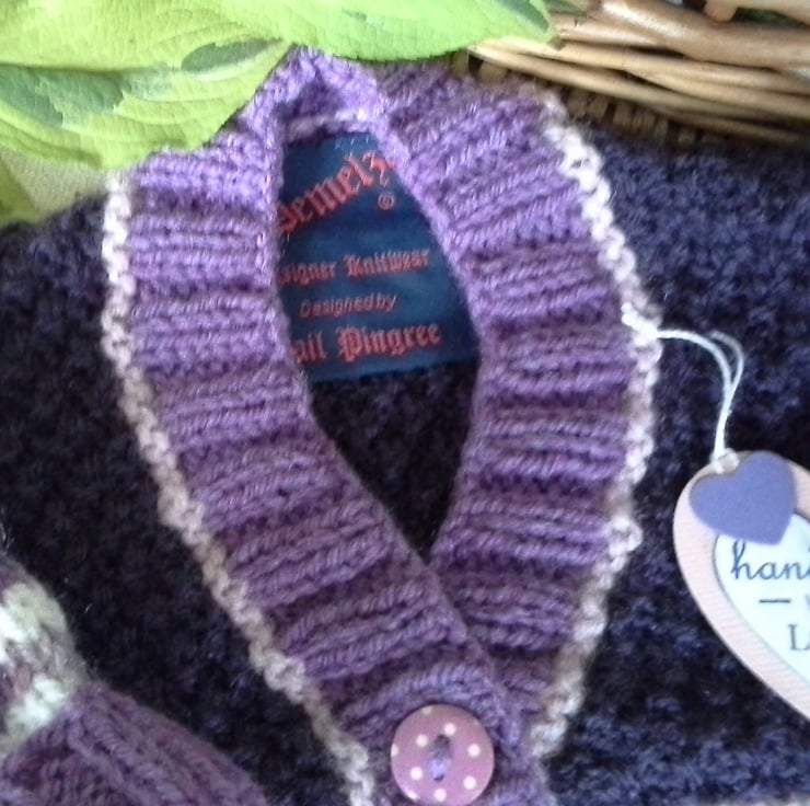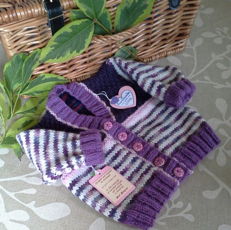 This beautiful eye catching cardigan has been lovingly designed and hand crafted in Cornwall by myself using quality branded French and British manufactured yarns. All yarns are guaranteed machine washable at low temperature settings. The branded luxery Demelza garment label has the care instructions woven within it for lasting reference for busy mother's to refer to at a glance. This item is of a quality to be handed on to another newborn once outgrown. Over the years clients have informed me my garments have been worn by five baby girls within one family!
