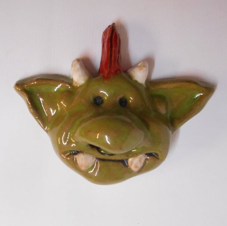I have always been a fan of Fungus the bogeyman, so I decided to make a mould so I can produce items with his face on. These faces look great just hanging on the wall, or attached to clothing. Many available. 7 cm across.