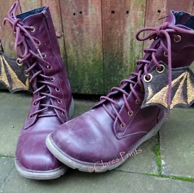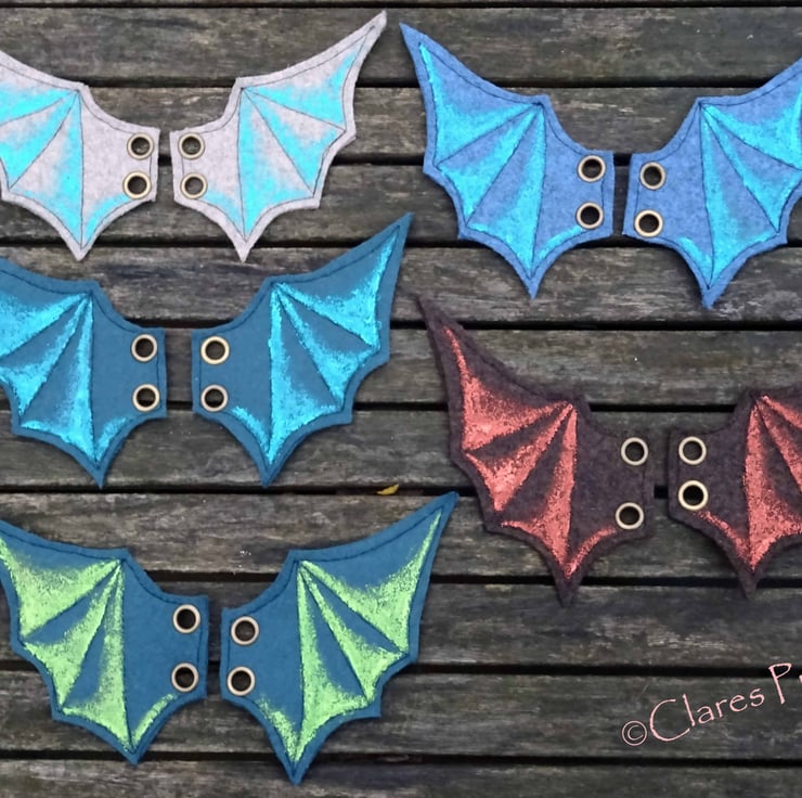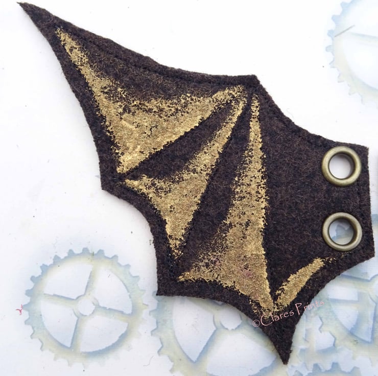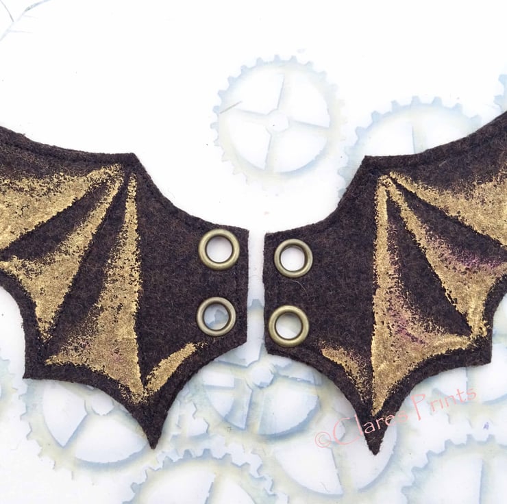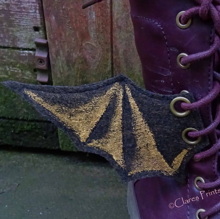 Made from 100% wool felt with two antique brass eyelets on each wing so can be threaded onto the laces of boots, corsets etc.