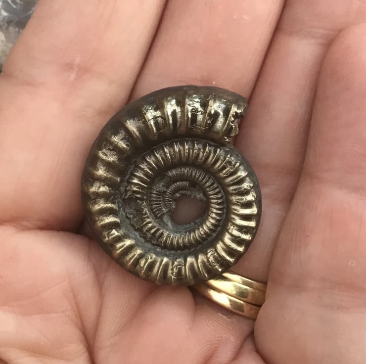 A truly stunning Golden Pyrite ammonite Fossil specimen, ideal for display as it is, or as a centre piece in a jewellery project or maybe for the geological or fossil collector in the house! Ideal as a photography prop too.