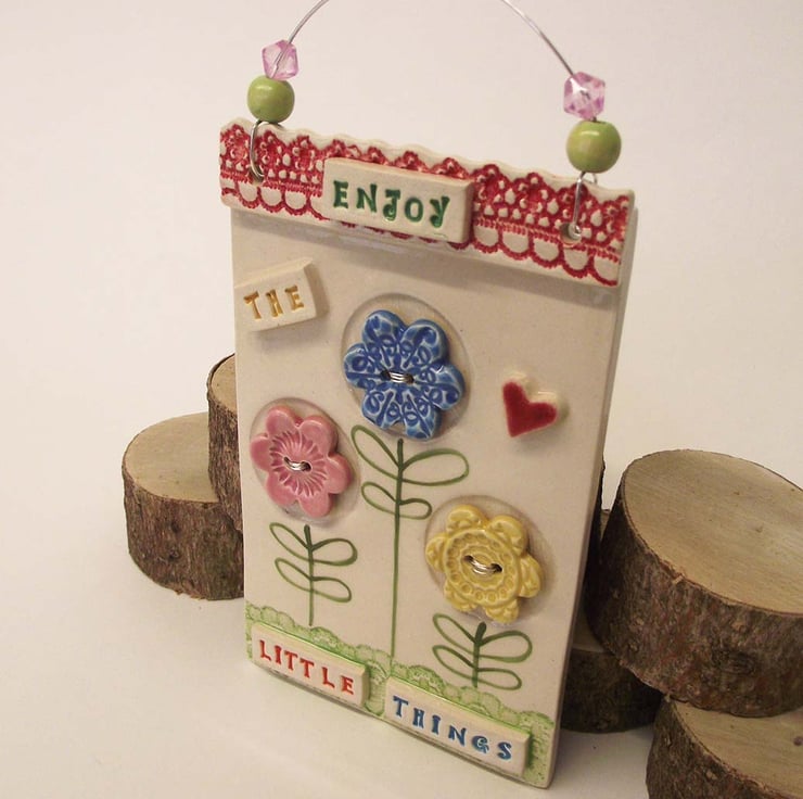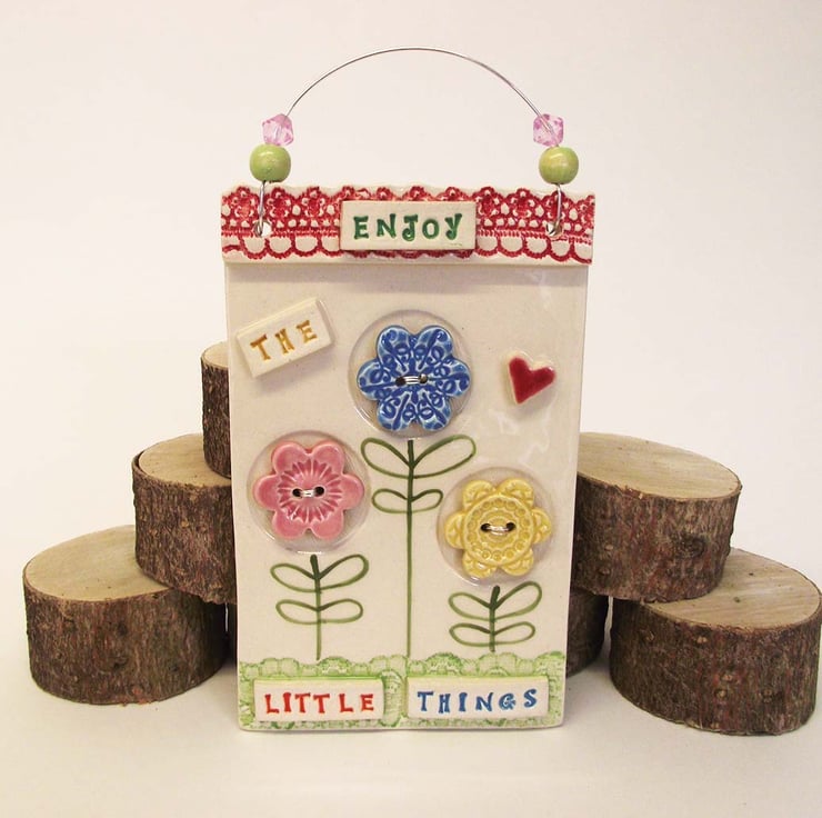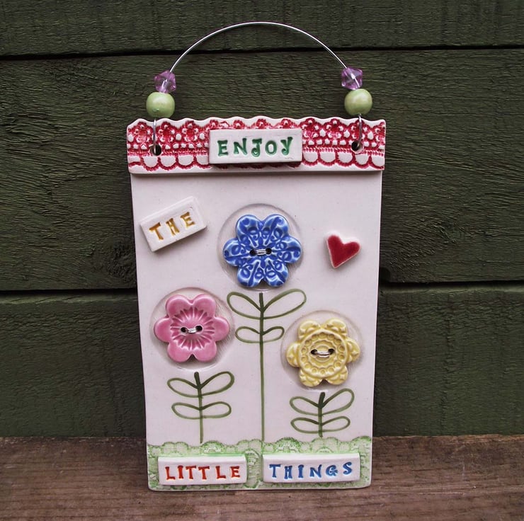 This ceramic wall plaque is made from white earthenware clay and measures 5" x 3" or 16 x 10 x 1.5cm