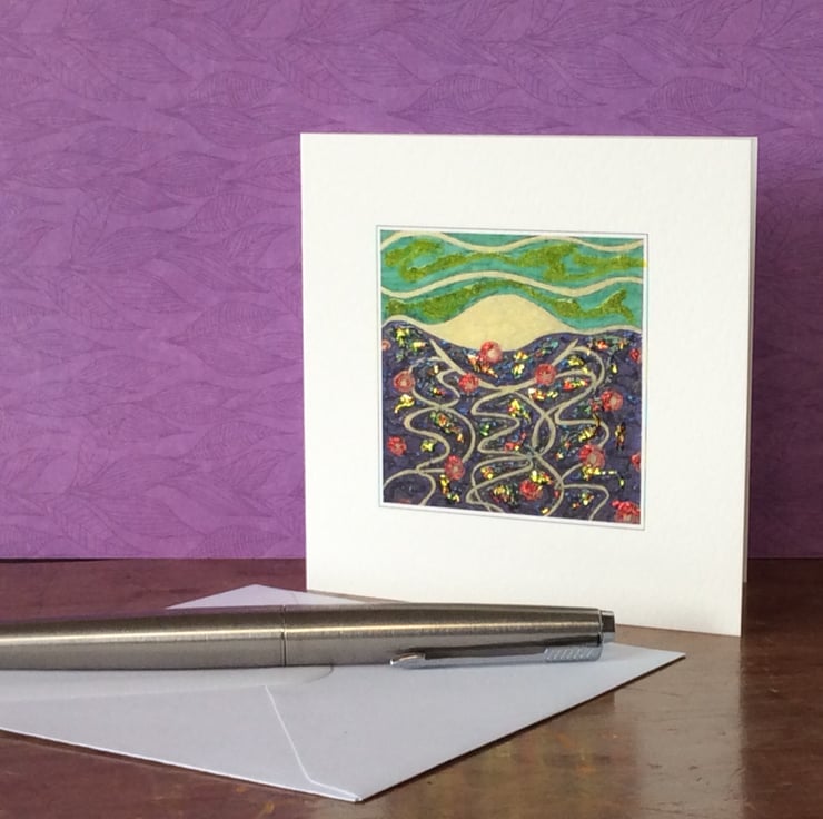 It will be sent out first class. If you live outside England please email me and I will do my best to accommodate you. If you want more than one item then please email me to discuss grouping the postage. Whilst I have done my best to photograph this card there may be some variation in colour due to monitor differences, and my work is very shiny and consequently quite hard to capture!