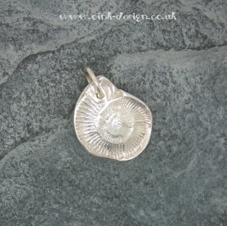 This is a beautiful fine silver (999) ammonite with a sterling silver (925) jump ring.