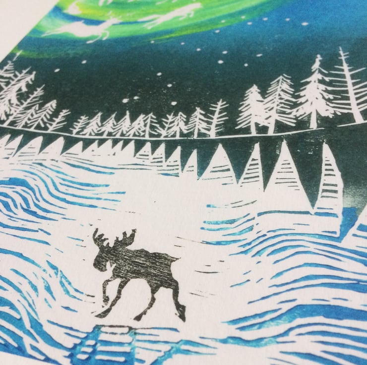 The aurora borealis is an obsession of mine, as are folklore tales concerning it. The limited edition Lino print is now sold out but I decided to make it available as a reproduction art print. This giclee print uses the highest quality inks on A3 Shiro Eco paper and is an excellent copy of the original. The printed area measures approximately 180mm x 270mm and will fit a standard size frame. It will be sent titled and signed, backed with card, carefully flat packed. It would make a lovely present for anyone obsessed with sky gazing and the Northern Lights.