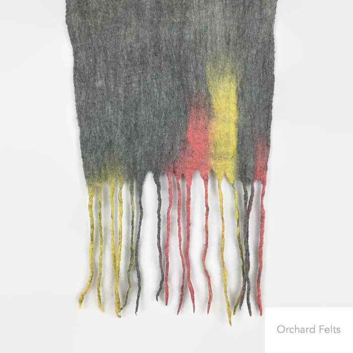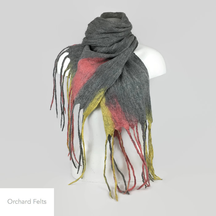 A beautifully soft and lightweight wet felted merino wool scarf.