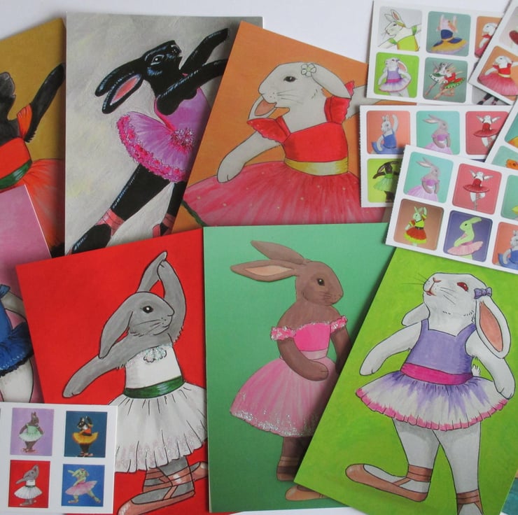 This is a selection of Ballet BunBuns items. The Ballet BunBuns are a range of ballet dancing bunny rabbits who I have created. Each little bunny ballerina is named after a flower or plant, and wears a pretty tutu or dance costume and ballet shoes.
