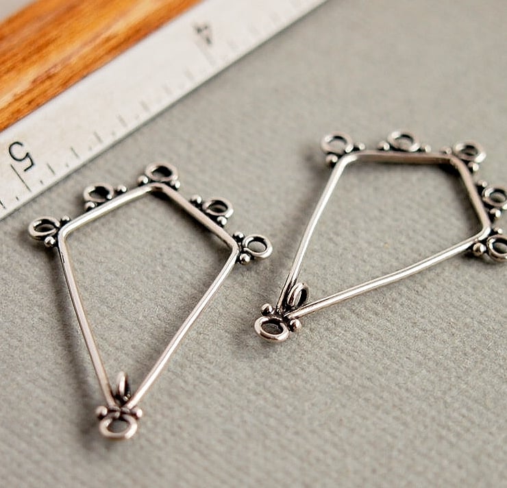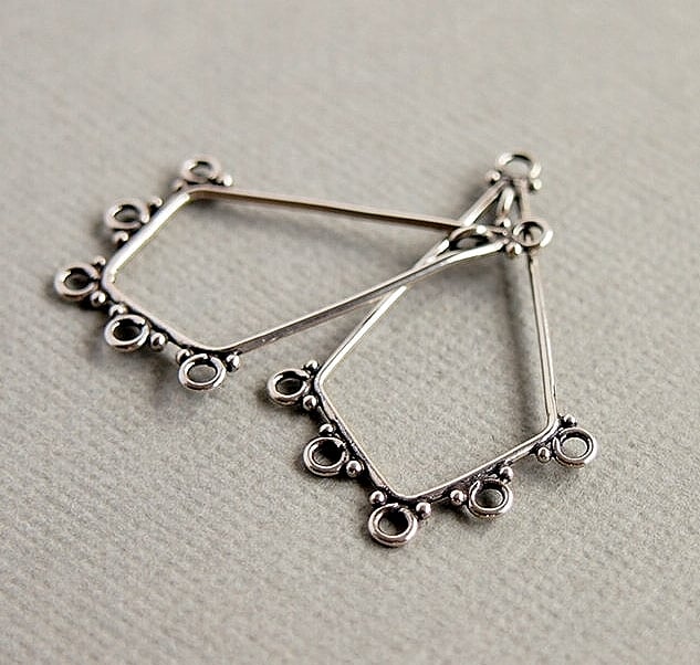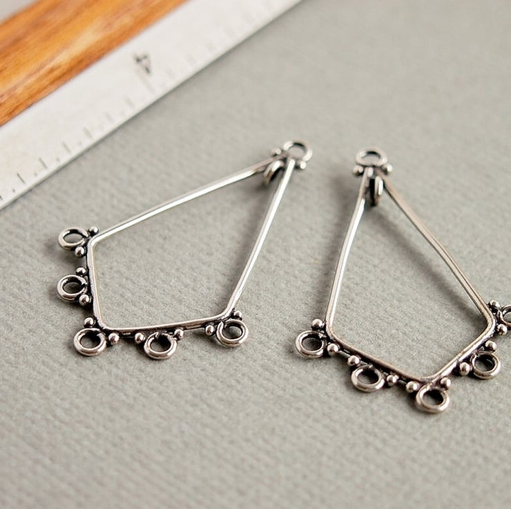 One pair of Bali .925 oxidised silver chandelier earring drop components.