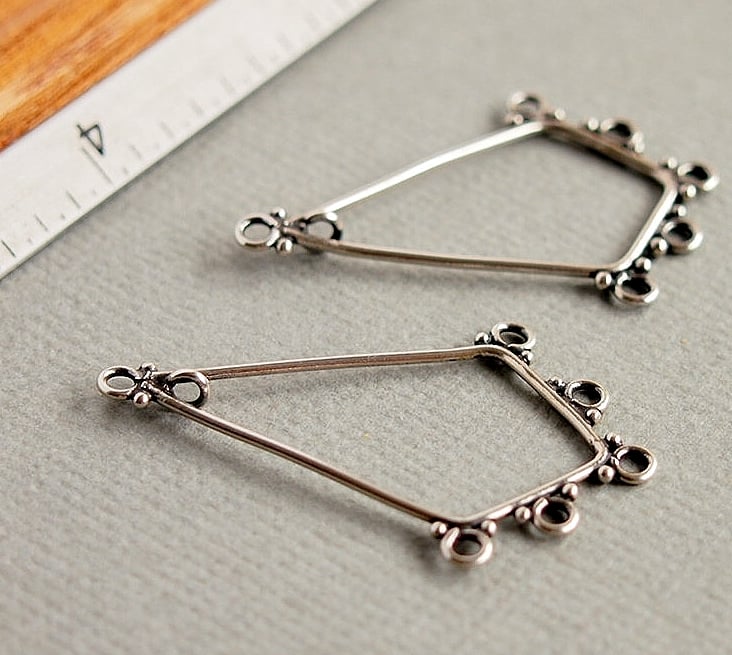Chandeliers measure approximately 34 mm long and 22 mm at widest point. Loops have an internal measurement of approximately 2 mm.