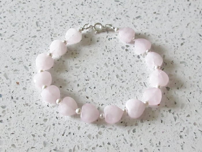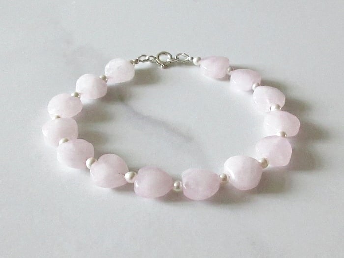 To me Rose Quartz heart beads & pearls always ooze elegance so I teamed them together & the result is this romantic, elegant bracelet.