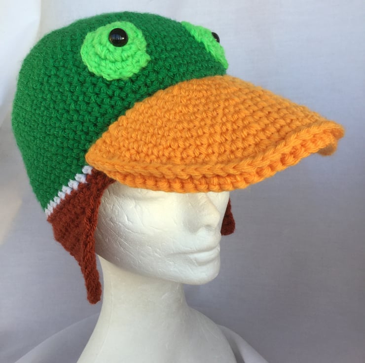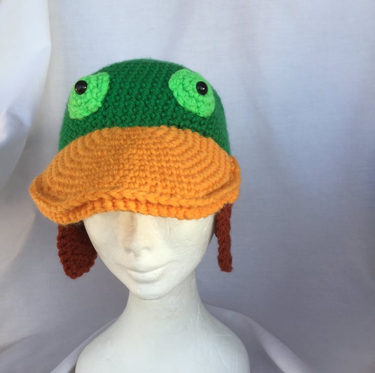 Handmade crochet duck hat.