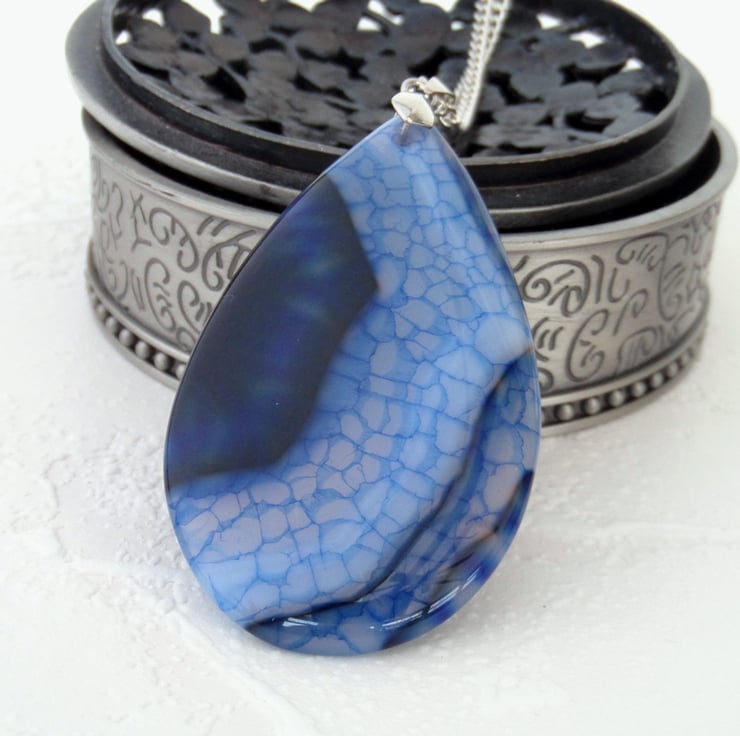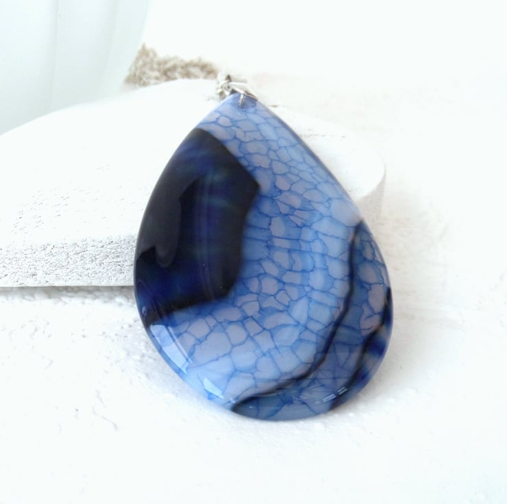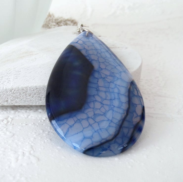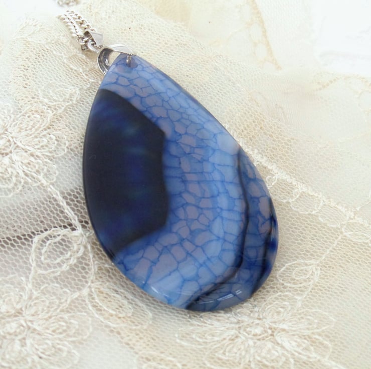 A lovely and unusual dragonvein agate pendant necklace, in beautiful shades of blue.