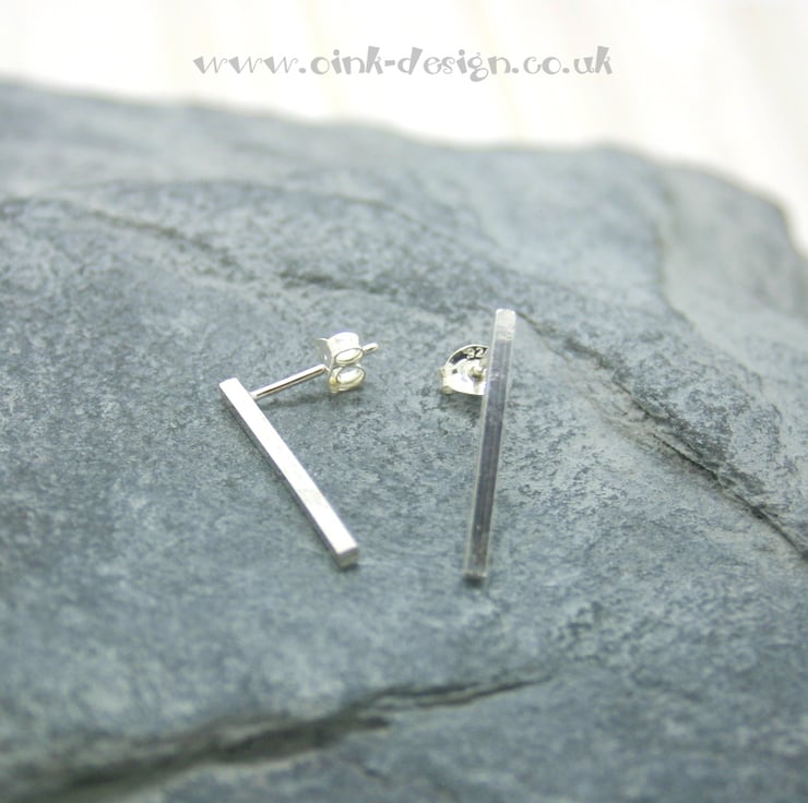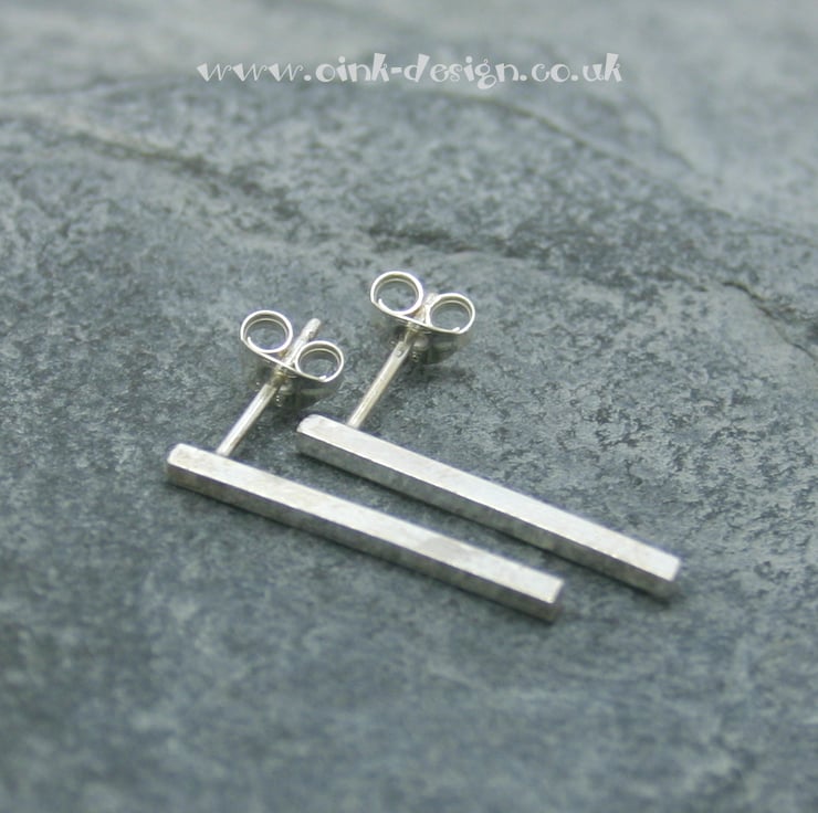 A gorgeous pair of beautiful sterling silver (925) square bar stud earrings.