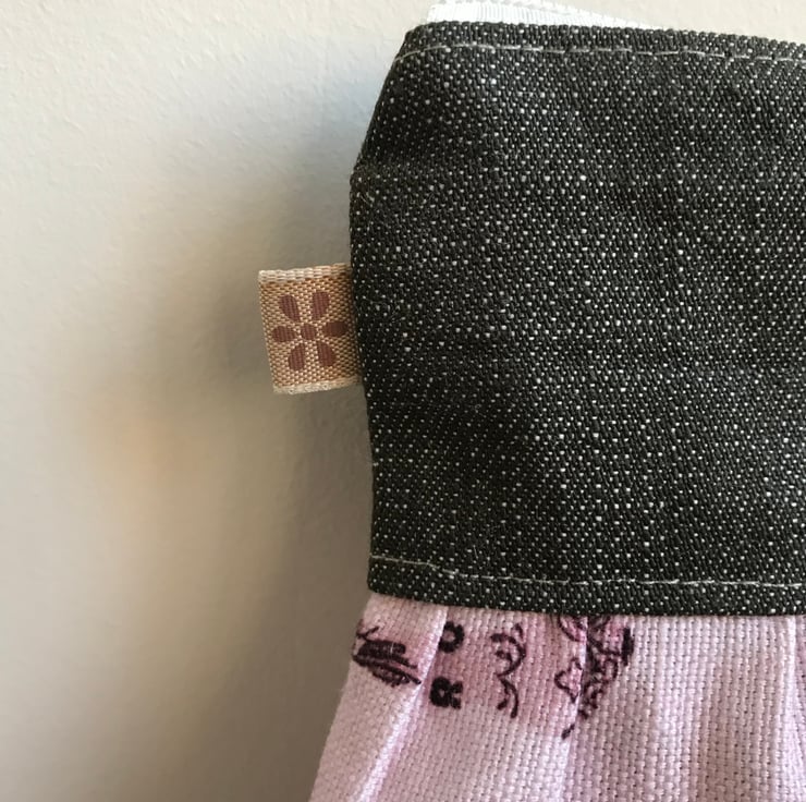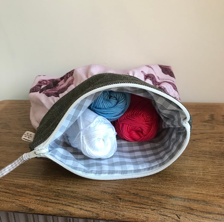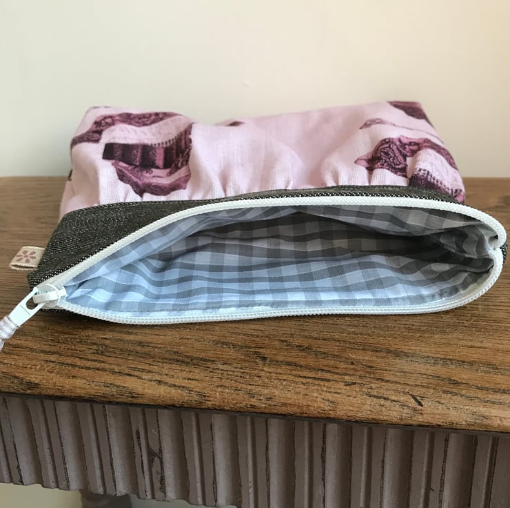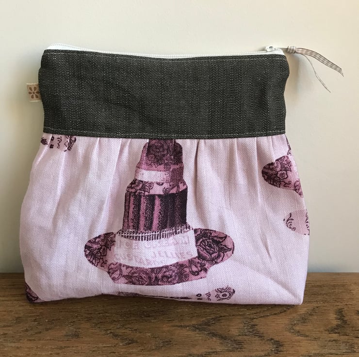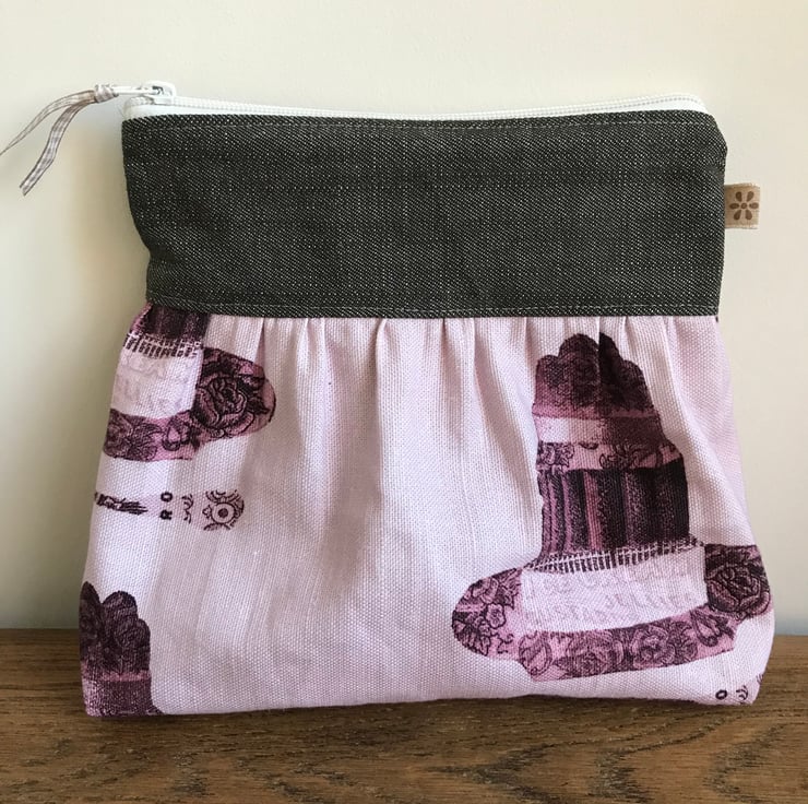 A pretty combination of Marianne Ley Design linen and denim combine to make a practical zip bag which could be used for make up, small craft projects or even as a clutch bag.