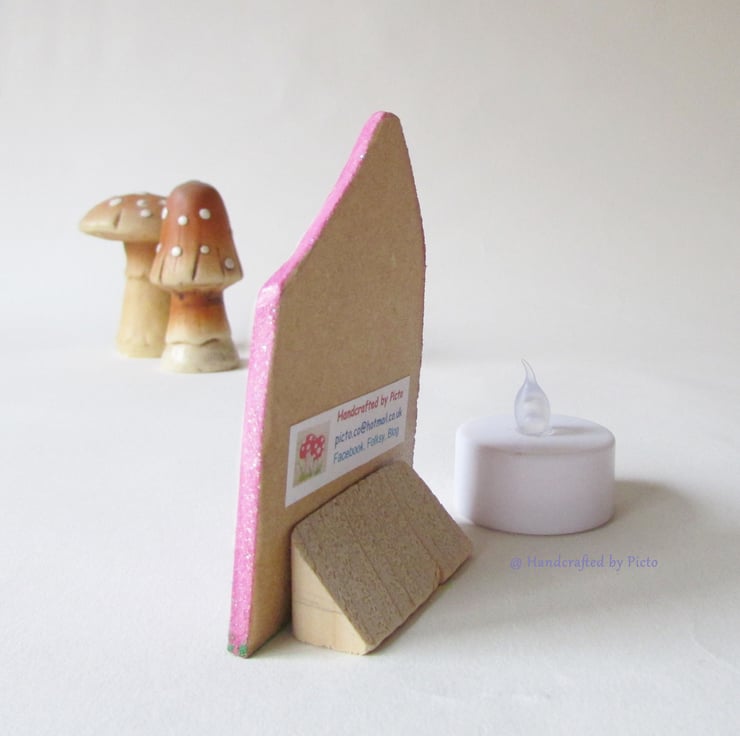 This cute little Fairy Door can be placed anywhere you want your little fairies to enter. You can stick it above a doorframe, on the skirting board or standing on a bookshelf or table.