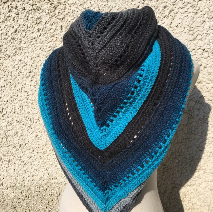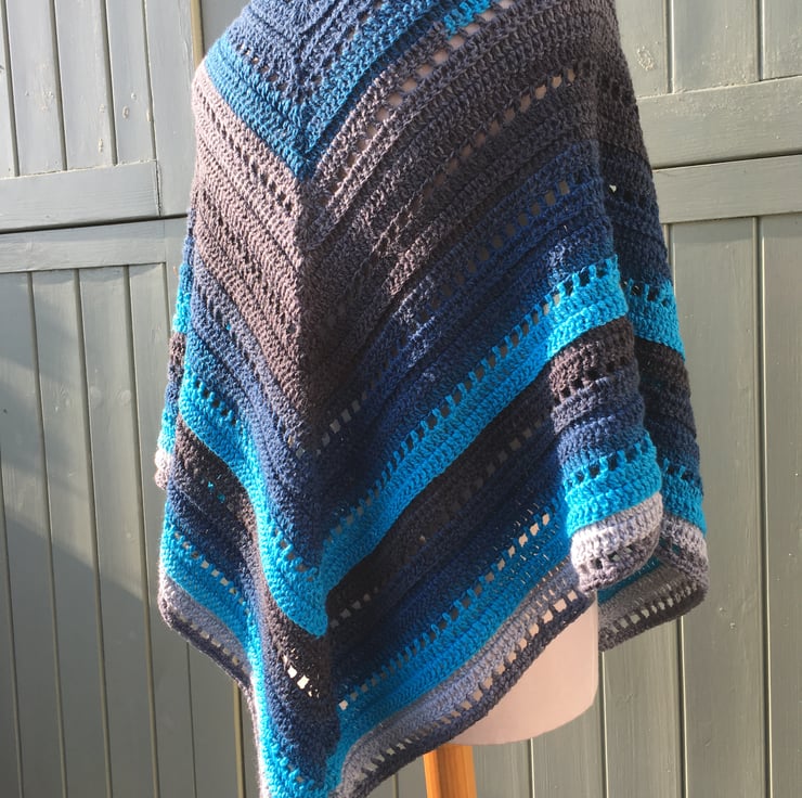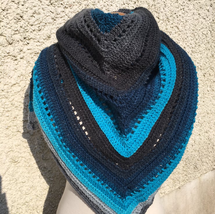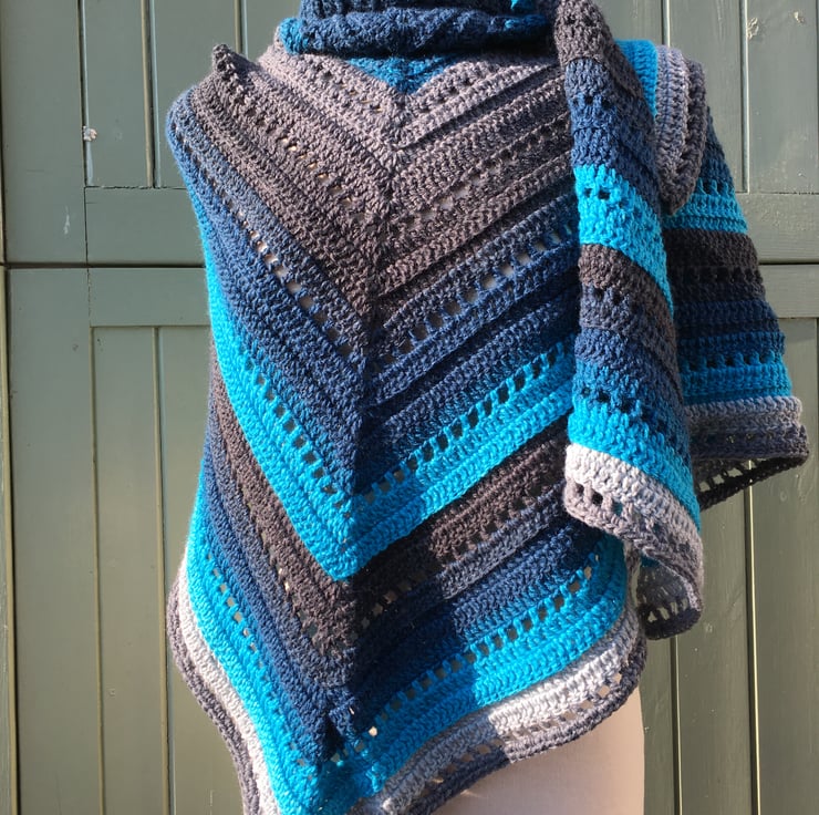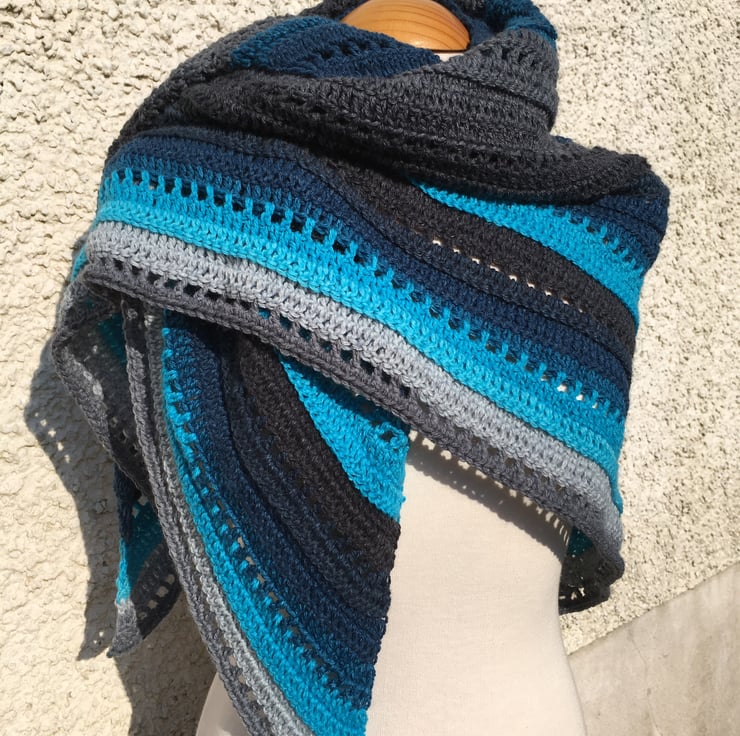 When I was crocheting this shawl, I designed the texture and engineered the colour changes so it would appeal more to someone seeking a maybe more subtle severe look.
