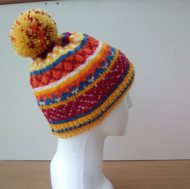 Using 6 colours; ivory; lemon; yellow; orange; blue; brick red