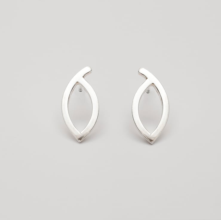 Miro by Fedha - asymmetric marquise-shaped sterling silver stud earrings