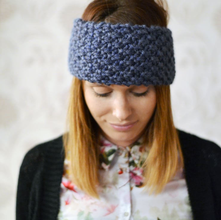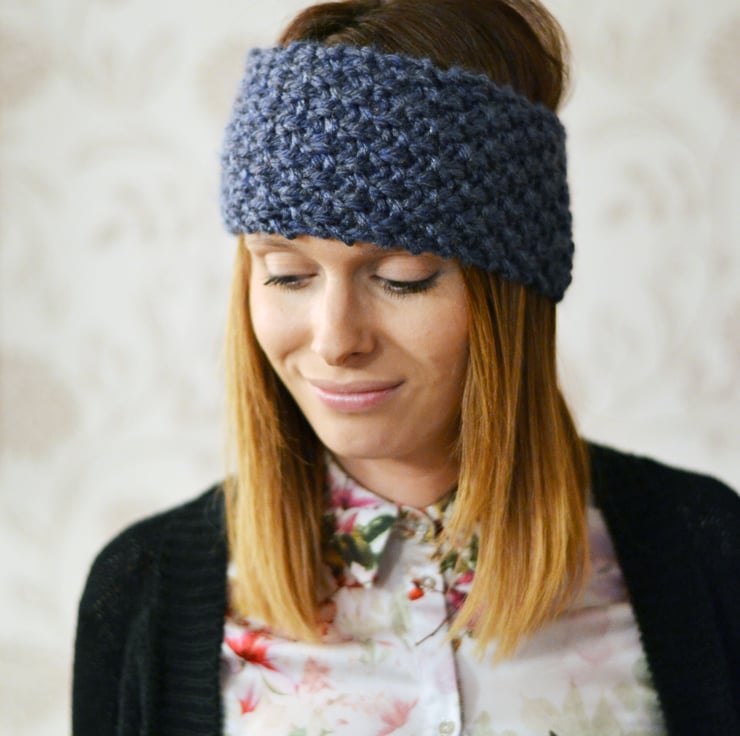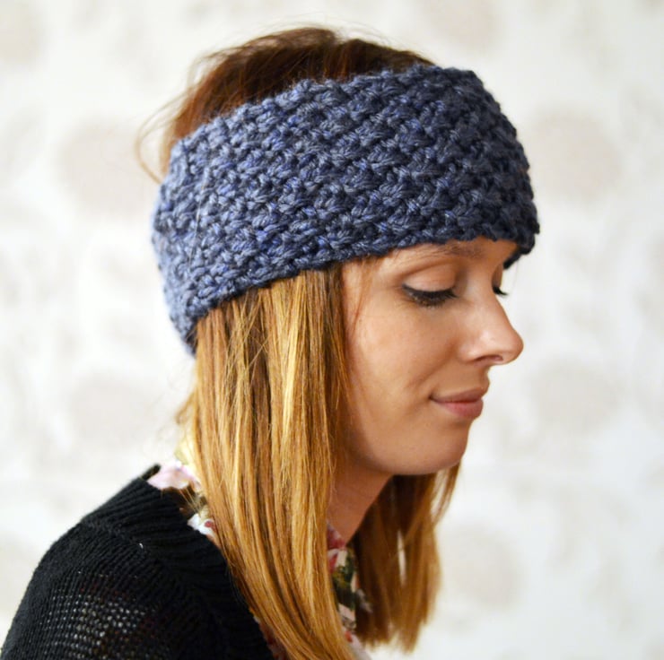 Knitted in a chunky yarn in a lovely yarn called indigo.
