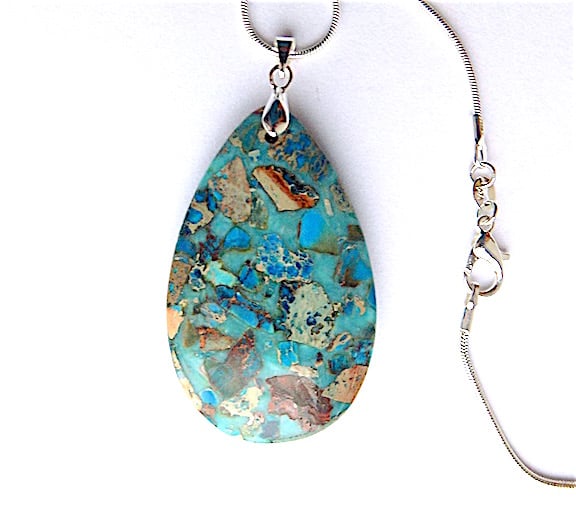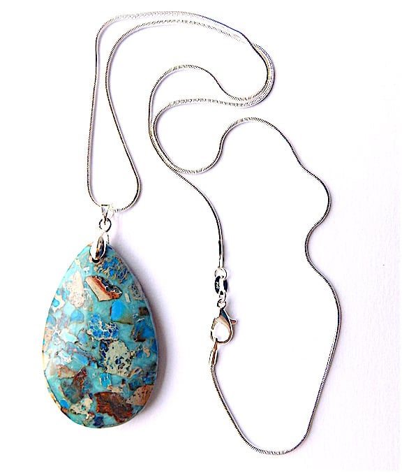 Sea sediment jasper pendant size 48 X 30 X 6 mm ( 4.8 X 3 X 0.6 cm ) last image is back view of pendant, Choice of 925 silver snake chain 18, 20, 22 or 24 inch please let me know when you order.