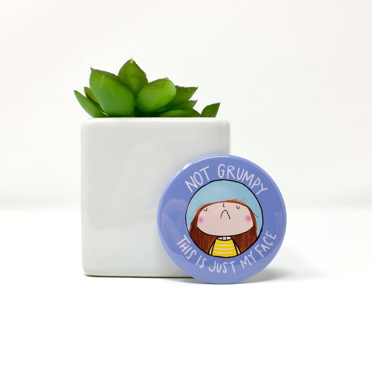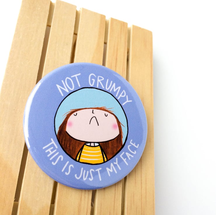 With this badge your resting grumpy face will be forgiven and everyone will know that you are not really grumpy!