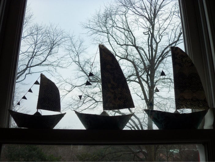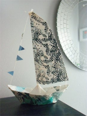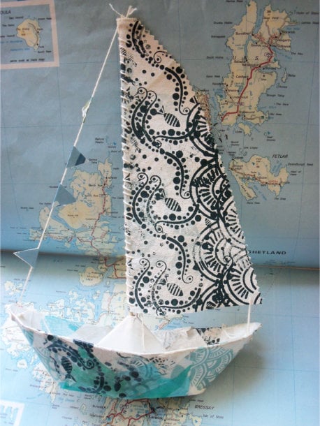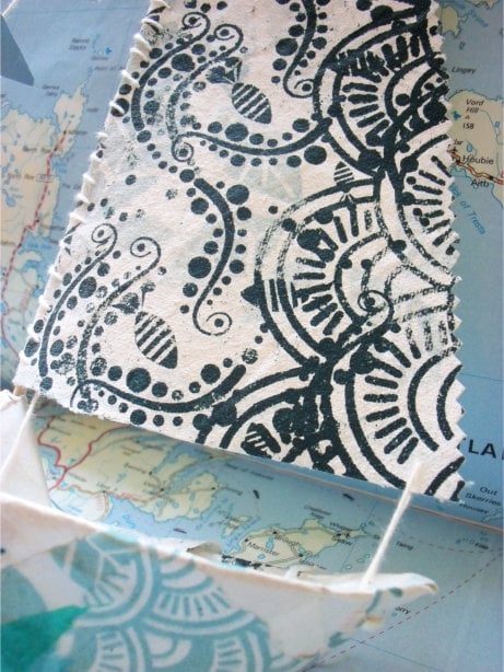 Sailing the ocean wave my screen printed blue and green handmade Papier Mache Boat. These look beautiful around the home or in your boat if you are a lucky sailor!