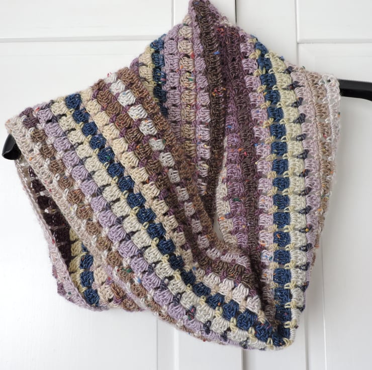 Custom listing for Sue, infinity scarf in acrylic and wool multi tonal yarn.