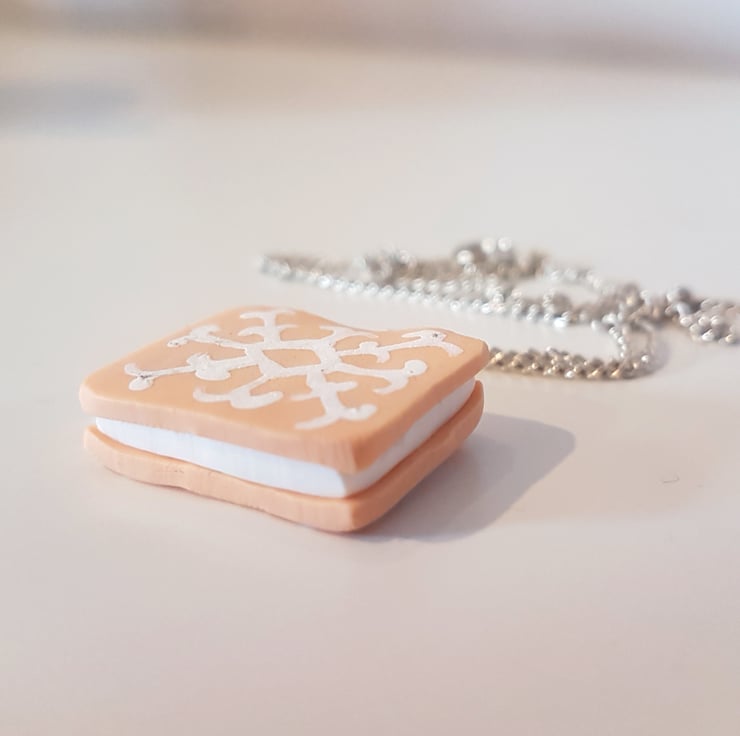 Retro Mini Custard Cream Biscuit necklace OR keyring - handmade, unique, gift