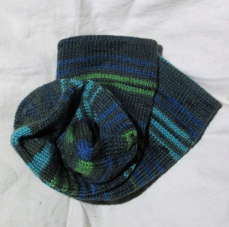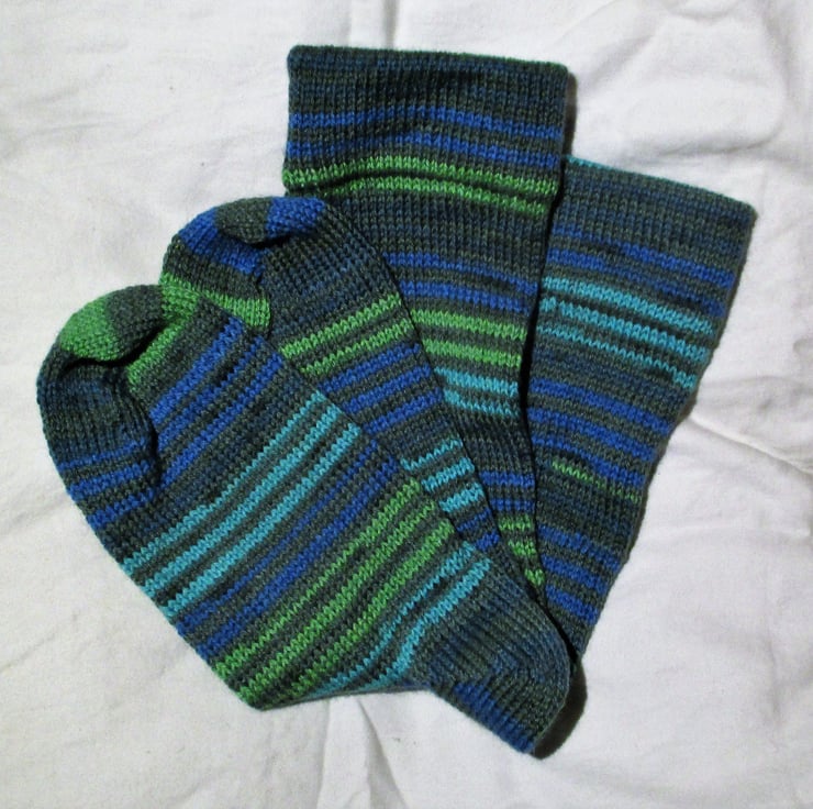 These socks were inspired by the colours and the feel of the yarn, the yarn reminded me of a seascape on a winters day.