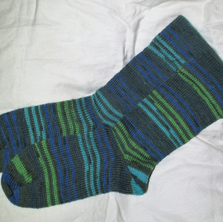 These socks were inspired by the colours and the feel of the yarn, the yarn reminded me of a seascape on a winters day.