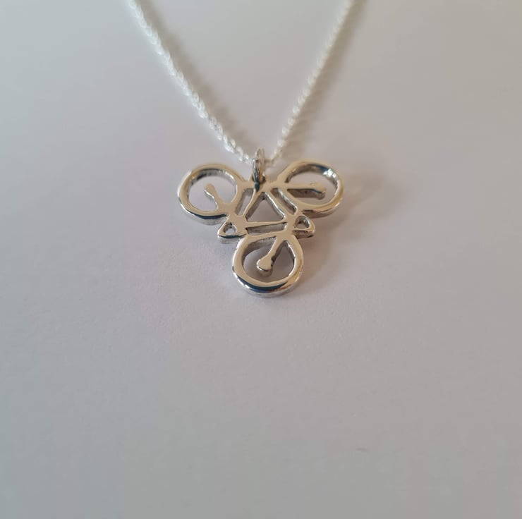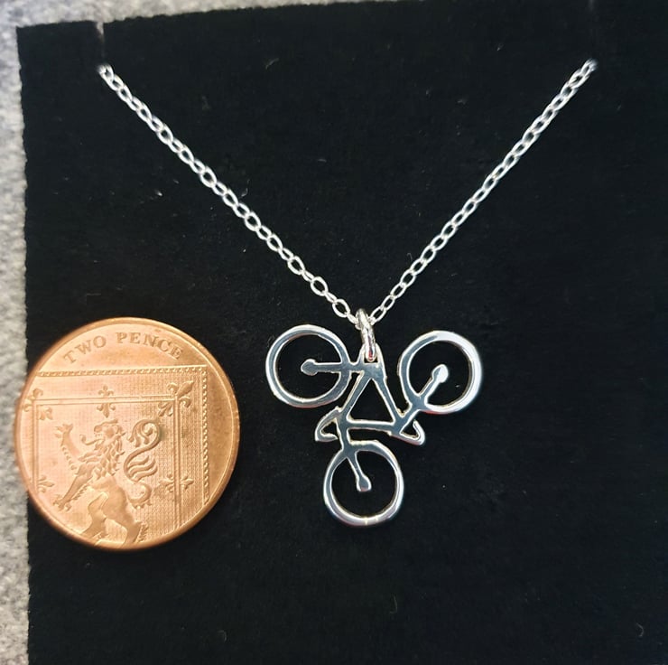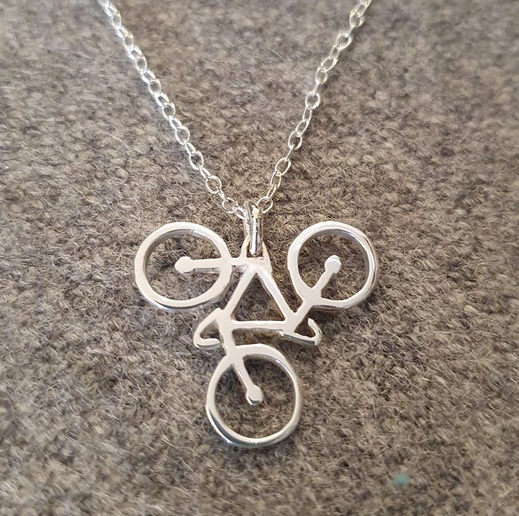 This is a truly unique and original design, which is the start of a new Cycling Collection from Alison inspired by her love of bikes and cycling. This lovely pendant is hand made and is a clever design where the cycle is repeated to make a unusual pendant. A must have for all those keen cyclists out there!! It comes on a silver 16 inch snake chain and is presented in a lovely black branded box. All of Alison's jewellery is sent using Special delivery so your jewellery is insured and guaranteed next day delivery.