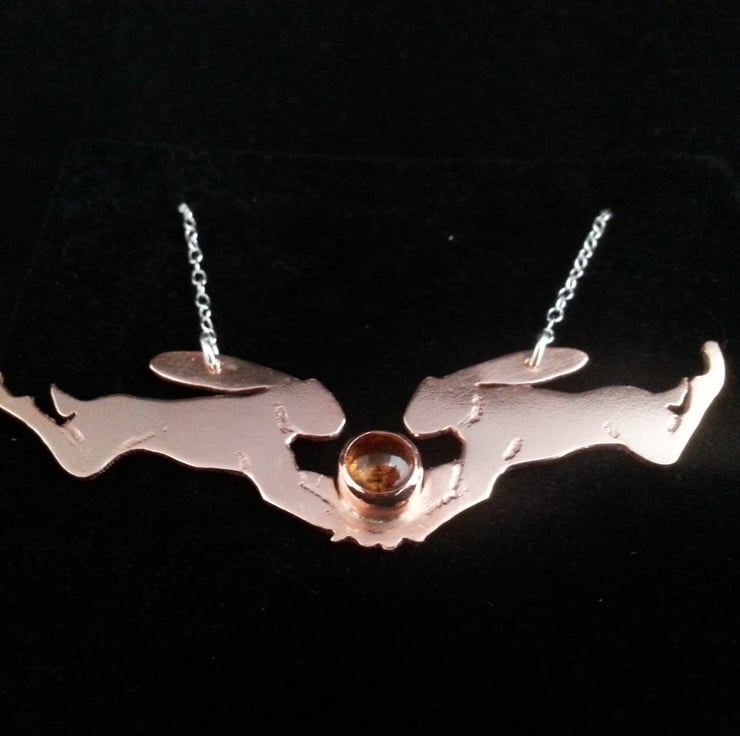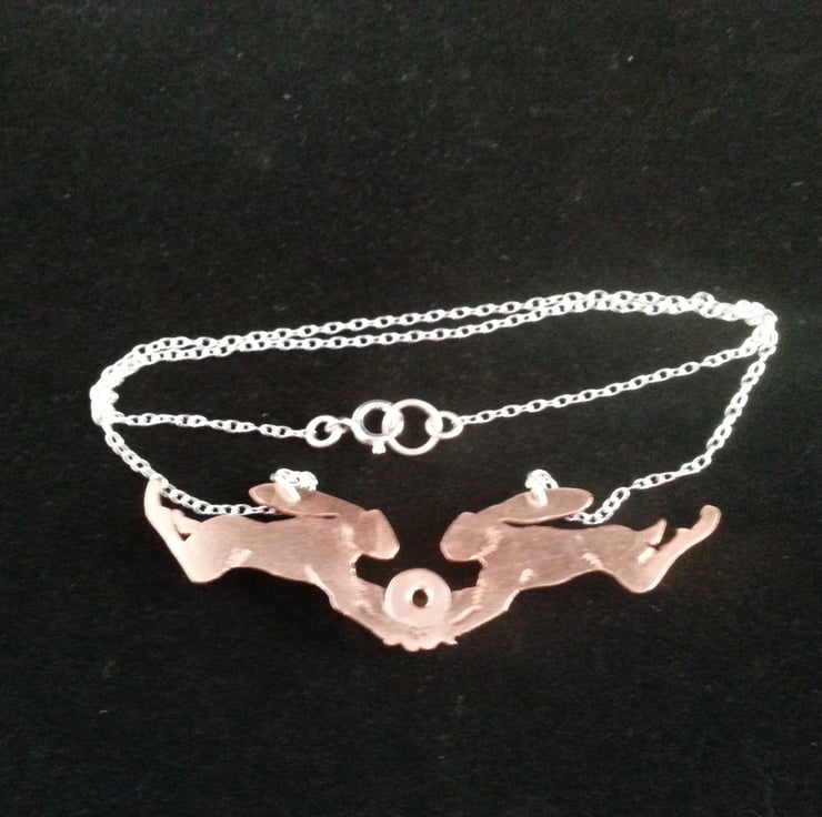 This romantic statement necklace coordinates with the heroic hares collection .This piece is an expression of love , hope and loyalty .