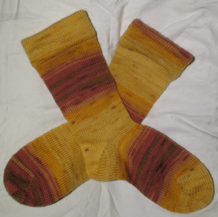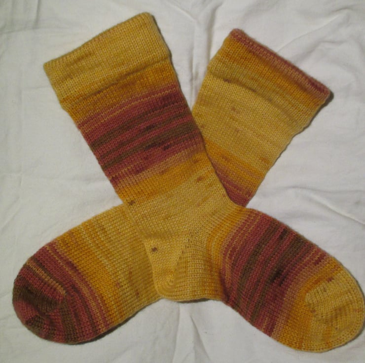 Inspired by wishing for a little sunshine in the midst of winter. Just looking at this great yarn in these socks makes you feel the warmth of a smile !!