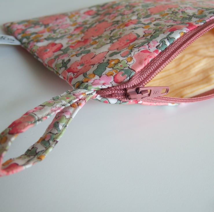 It closes with a dusty pink zip 17cm long.