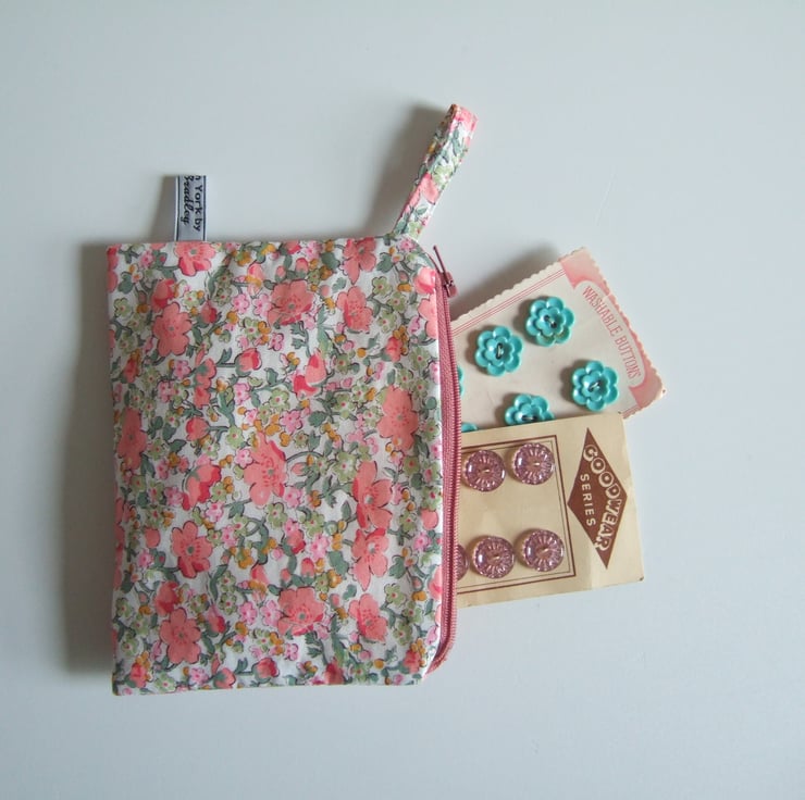 This sweet vintage fabric purse or make up bag would make a lovely Spring gift, with its pretty scattering of pastel flowers.