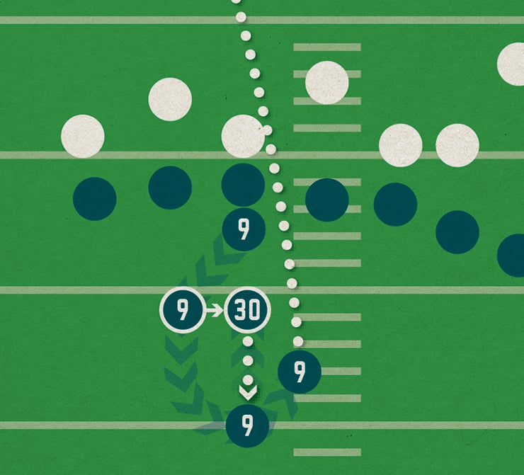 The play illustrated came in the third quarter and put the Eagles up by 31 points to 7. Quarterback Nick Foles handed the ball off to Corey Clement who then threw the ball back to Foles who launched a 50 yard pass to Torrey Smith for the touchdown and an unforgettable play. Fly, Eagles Fly!