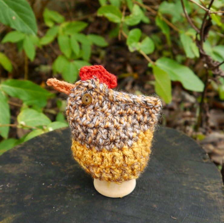 This crochet egg cosy is perfect for keeping your boiled egg nice and warm. Made with good quality chunky wool and has buttons sewn on for eyes. This one is a lovely gold, brown and orange colour and has a lovely red comb and orange beak. Other colours are available in my shop (see photos).