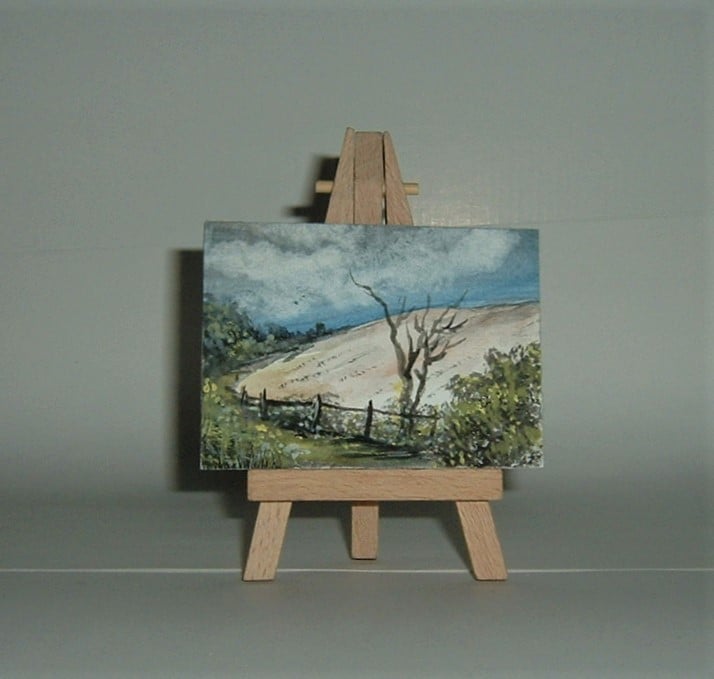 An aceo is a miniature painting that measures just 2.5" x 3.5" and is highly collectable.
