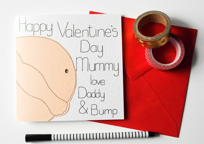 Greeting on front: Happy Valentine's Day Mummy from Daddy & Bump