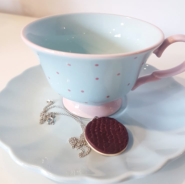 This listing is for a chocolate digestive biscuit charm, on a necklace or keyring, with carefully hand crafted detail.